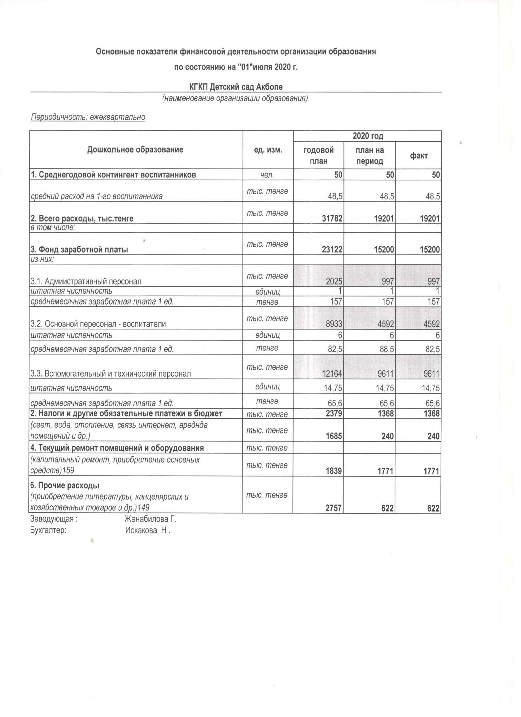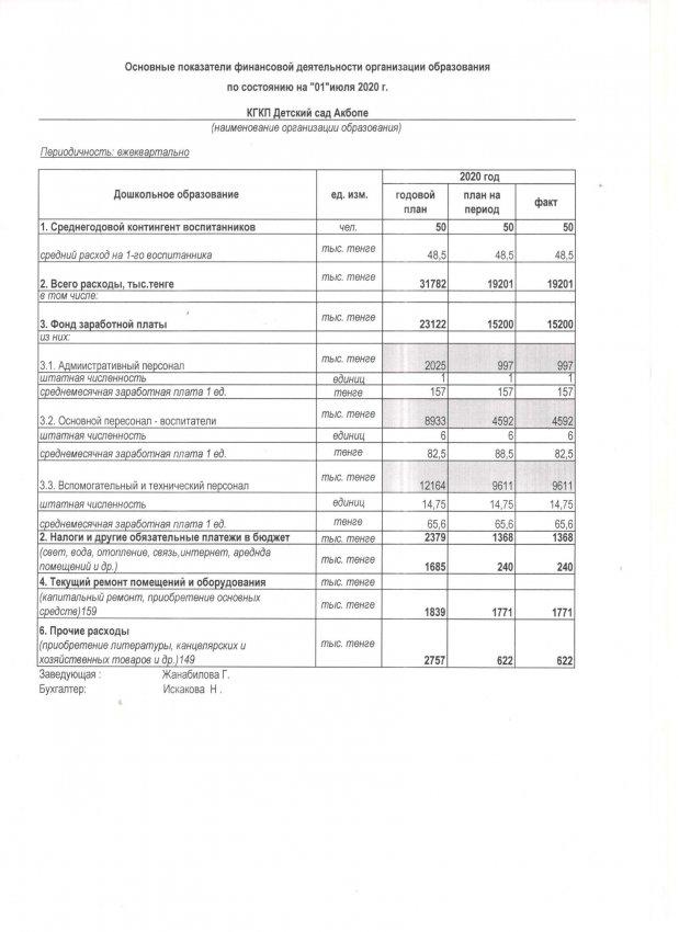 Основные показатели финансовой деятельности за 2 кв 2020 » "Ақбөпе" балалар бақшасы"
